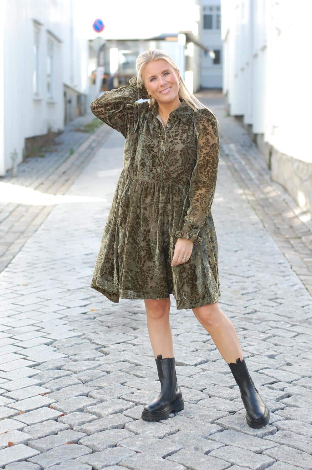 Kvaliteten på kjolen er i nydelig velour kvalitet. Elegante ermer og flott snitt.