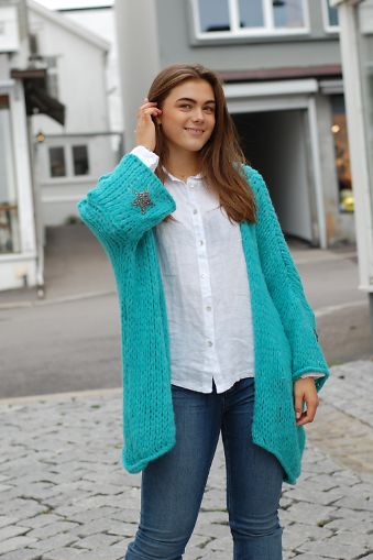 Hjem | Genser/cardigan | Linnea Star Cardigan Neon Turkis