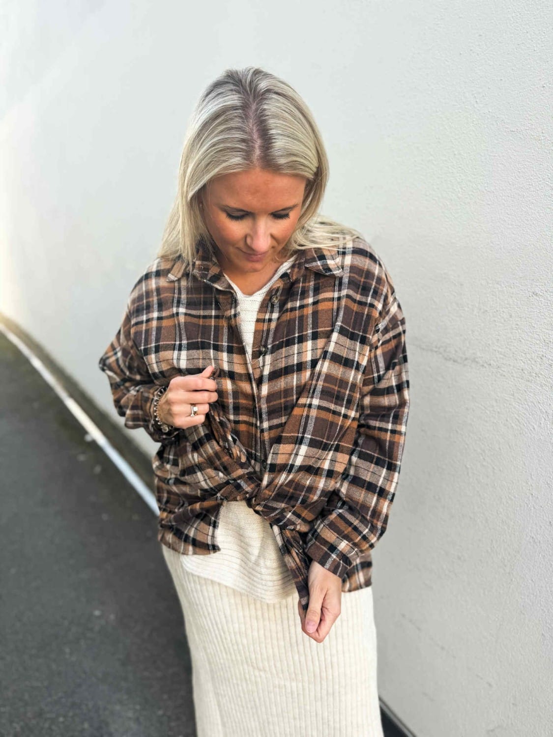 Dette må være den perfekte høst-skjorta! Knepping og oversize i modellen.