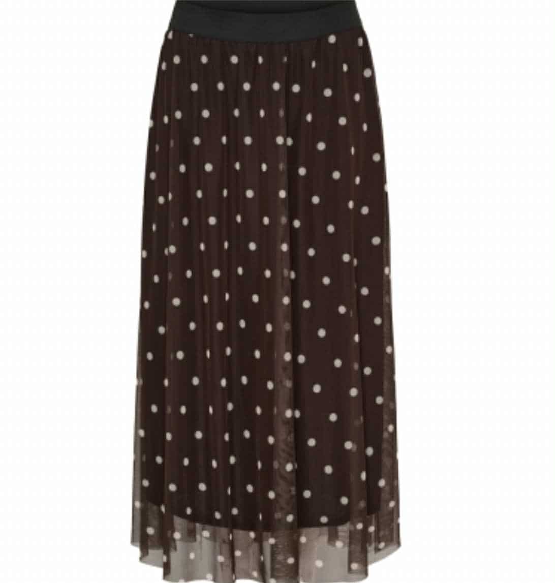Mani Skirt er et elastisk skjørt med prikker og strikk i livet. Perfekt til å pynte opp og ned.