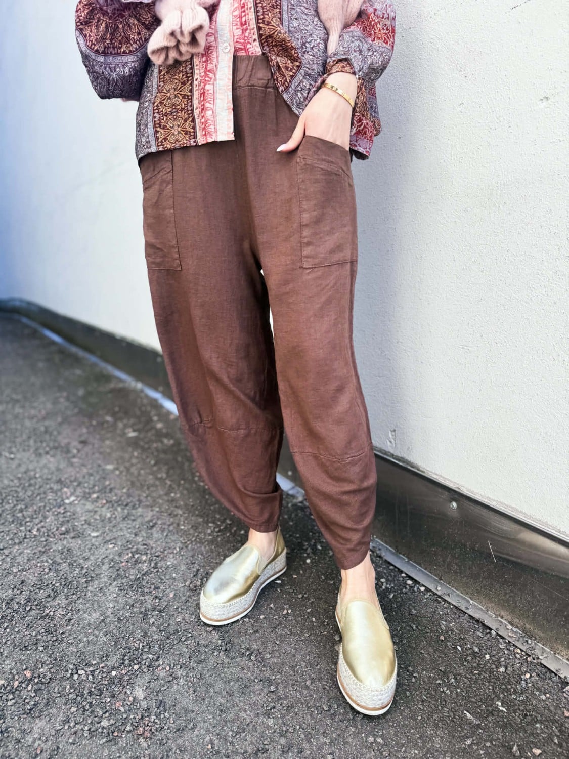 Denne buksa er bare så tøff! Dype lommer, strikk i livet og et fint snitt nederst ved beina.
