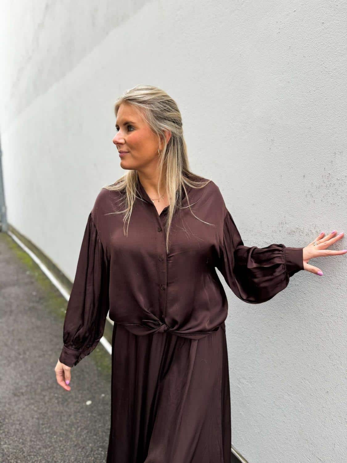 Elegant bluse i en nydelig brun-tone! Mørkebrunt er virkelig en trend farge.
