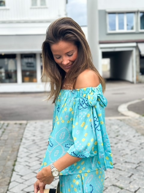 Nydelig «viskose» topp / bluse som passer til det meste. Kan også trekkes ned som en «off shoulder».
