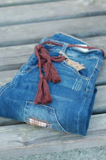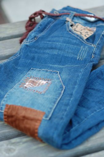 Tøff jeans med «patch» i ulike print og farger.