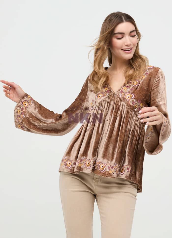 Superfin bluse i en myk og god «velour» kvalitet. Den er så elegant på. Like fin til svarte bukser, skinnbukser som et par jeans.