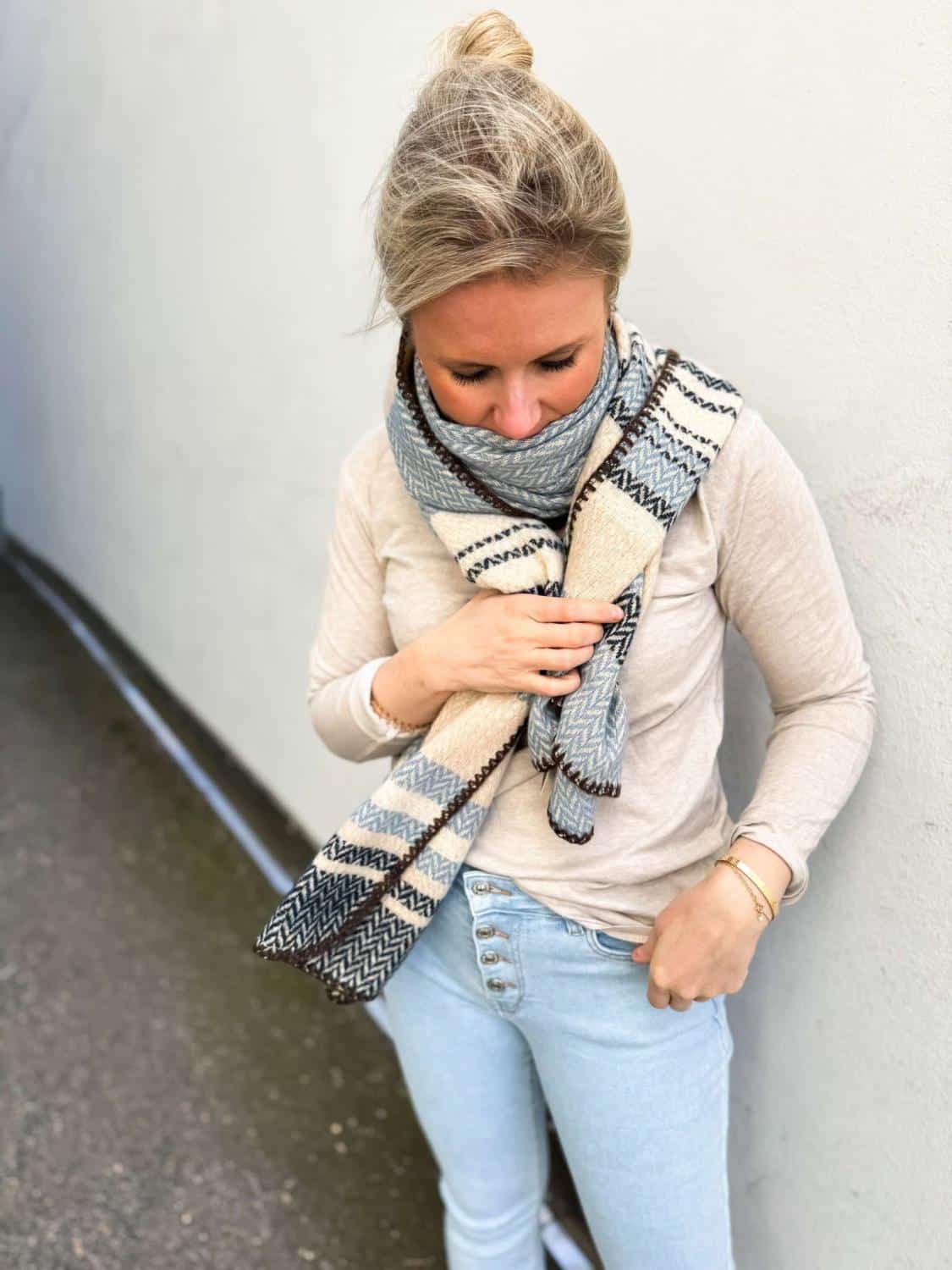 Kan brukes som både skjerf og sjal utover våren og kjørlige sommerkvelder.