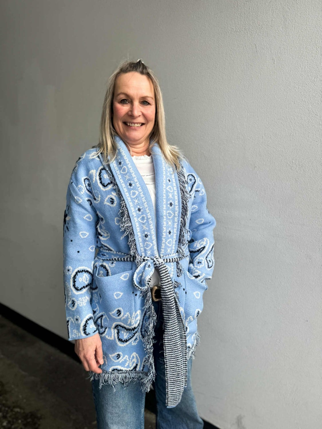 Vi digger denne jakka med frynser med knyting i livet.