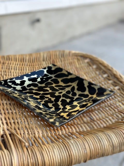 Lekkert glassfat i leopard.