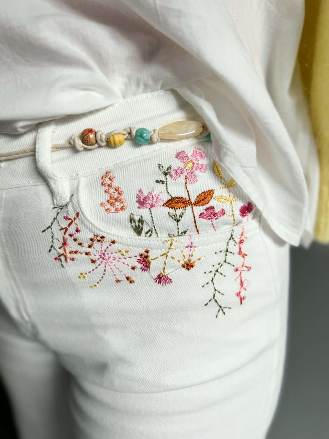 Vi elsker disse buksene! Lekre detaljer og broderinger. Knytebelte følger med.