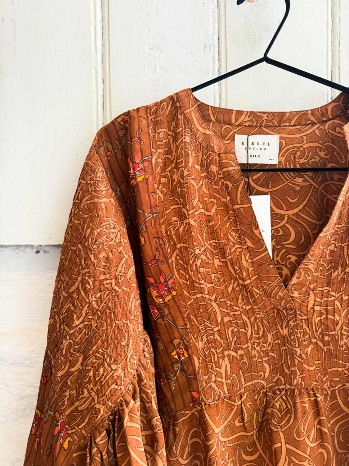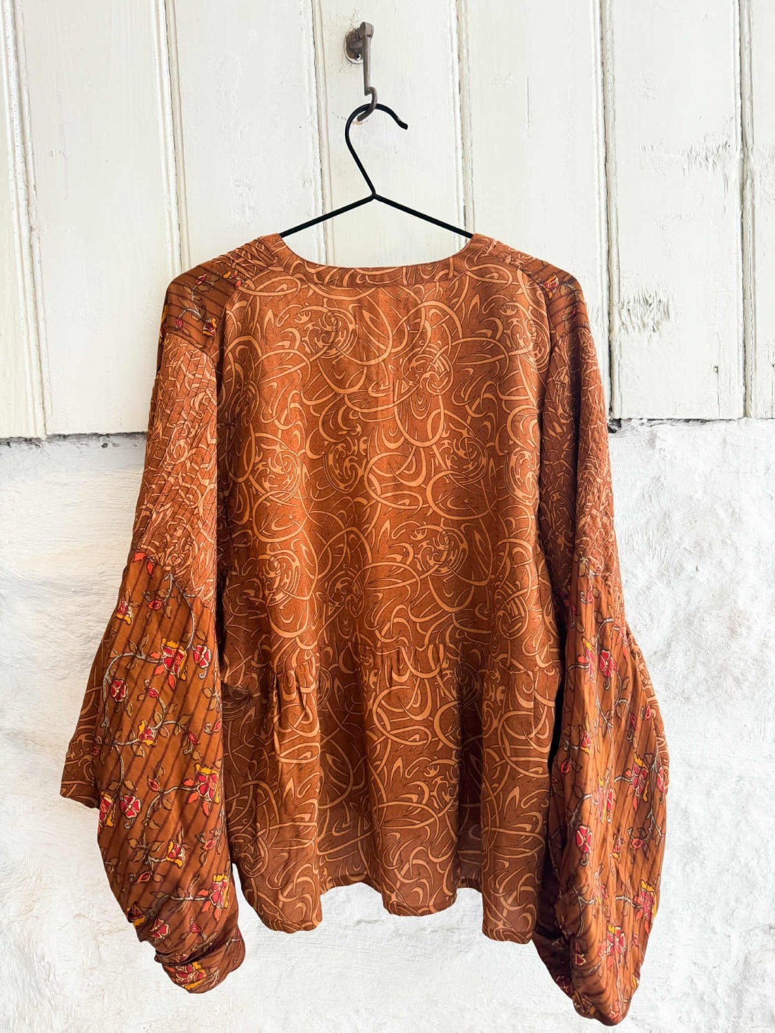 Denne blusen er bare så unik og vakker. Laget av indiske sarier og er i 100% silke.
