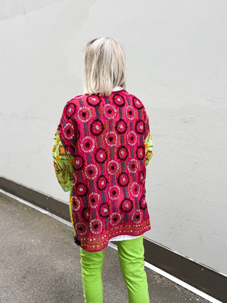 Denne jakken finnes det bare en av. Laget av indiske sarier.